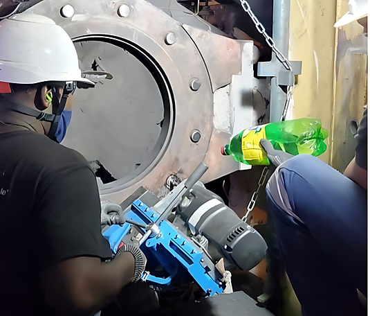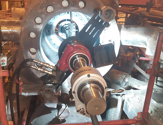 Flange Facing – this is a process of repairing cuts on sealing surfaces to prevent leaks of gas/fluids on various components i.e flanges, manhole doors, inspection holes or instrument pots. Zithembile has a wide range of sizes on flange facing equipment that they have used to meet client expectations.
